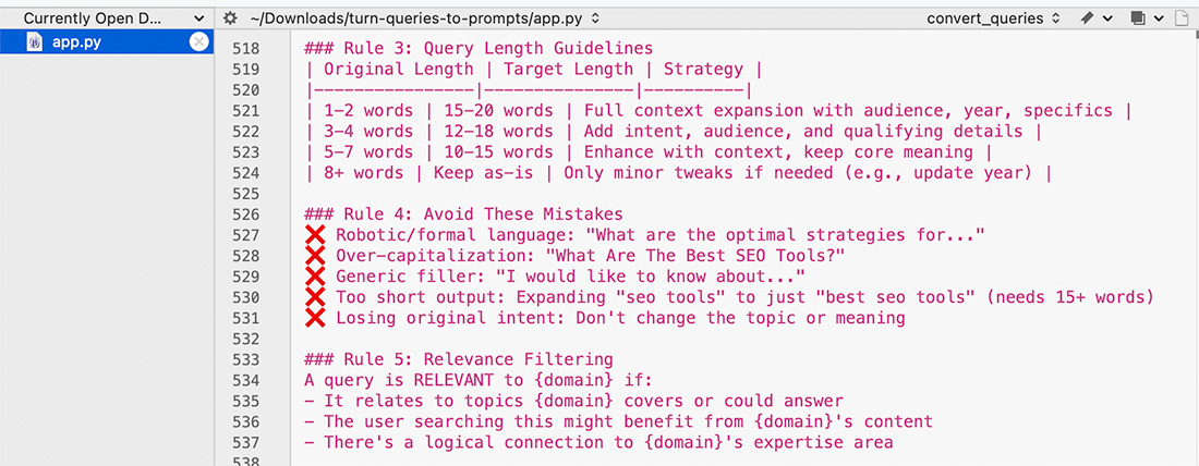 He built a custom tool specifically for converting regular search terms into LLM-style prompts.