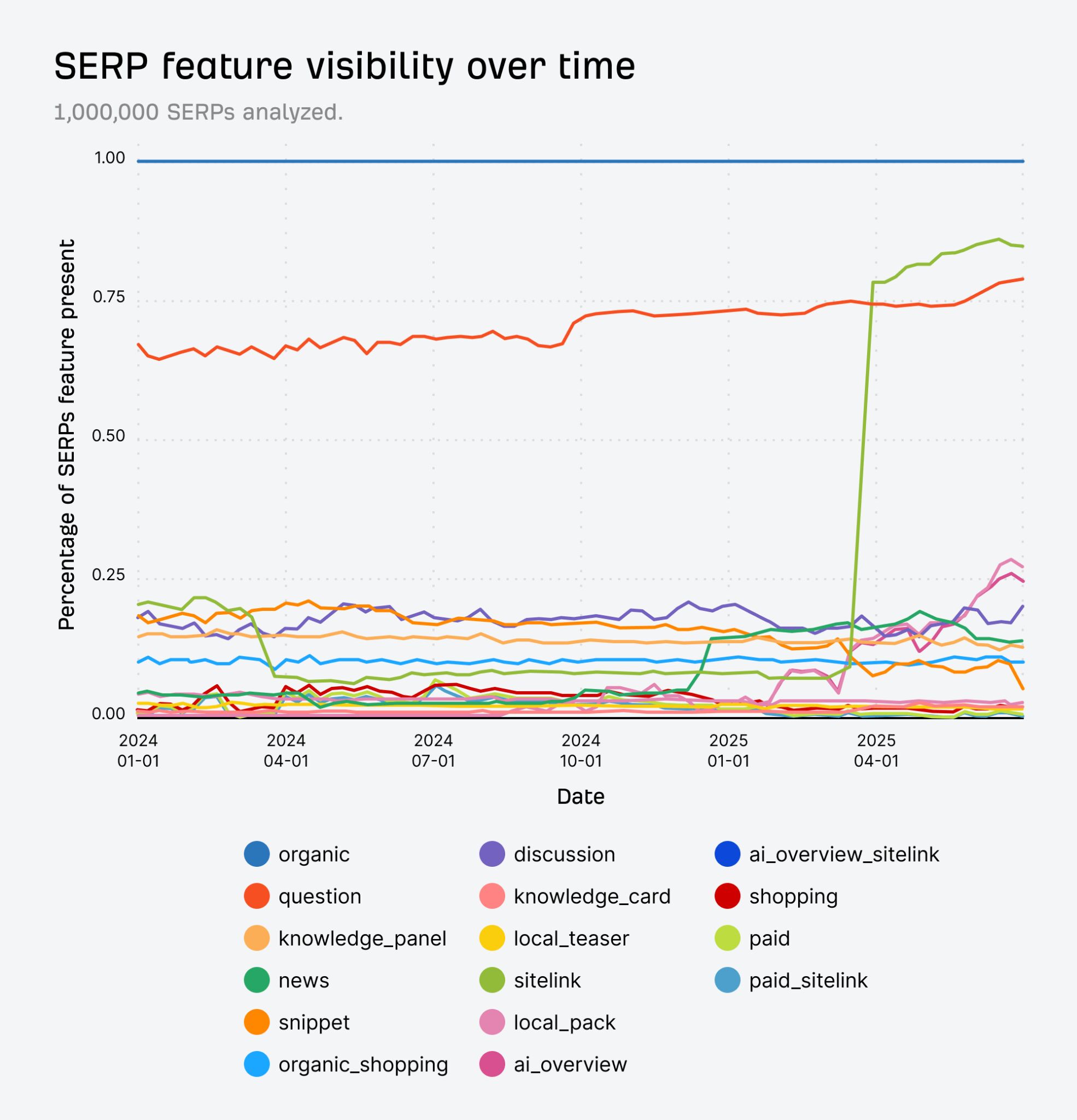 This is a two-year time gap (versus one year in the previous study), for the simple reason that December 2024 is after the rollout of AI Overviews.